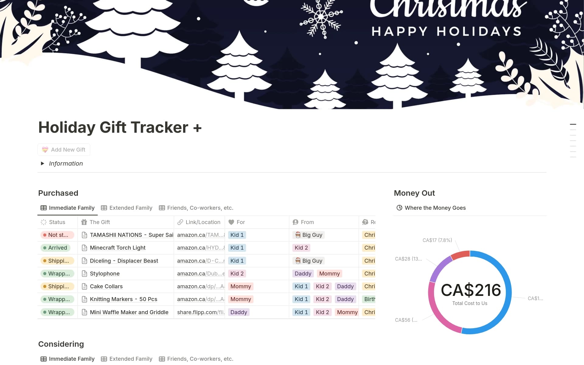 A place for what you want, what you’ll give, and the ideas in between. These templates help you organize wishlist items, track gifts, and keep every idea neatly in one space. Whether you’re planning thoughtful presents, saving must-have items, or just capturing ideas for yourself, everything stays tidy, intentional, and ready for you to explore.
